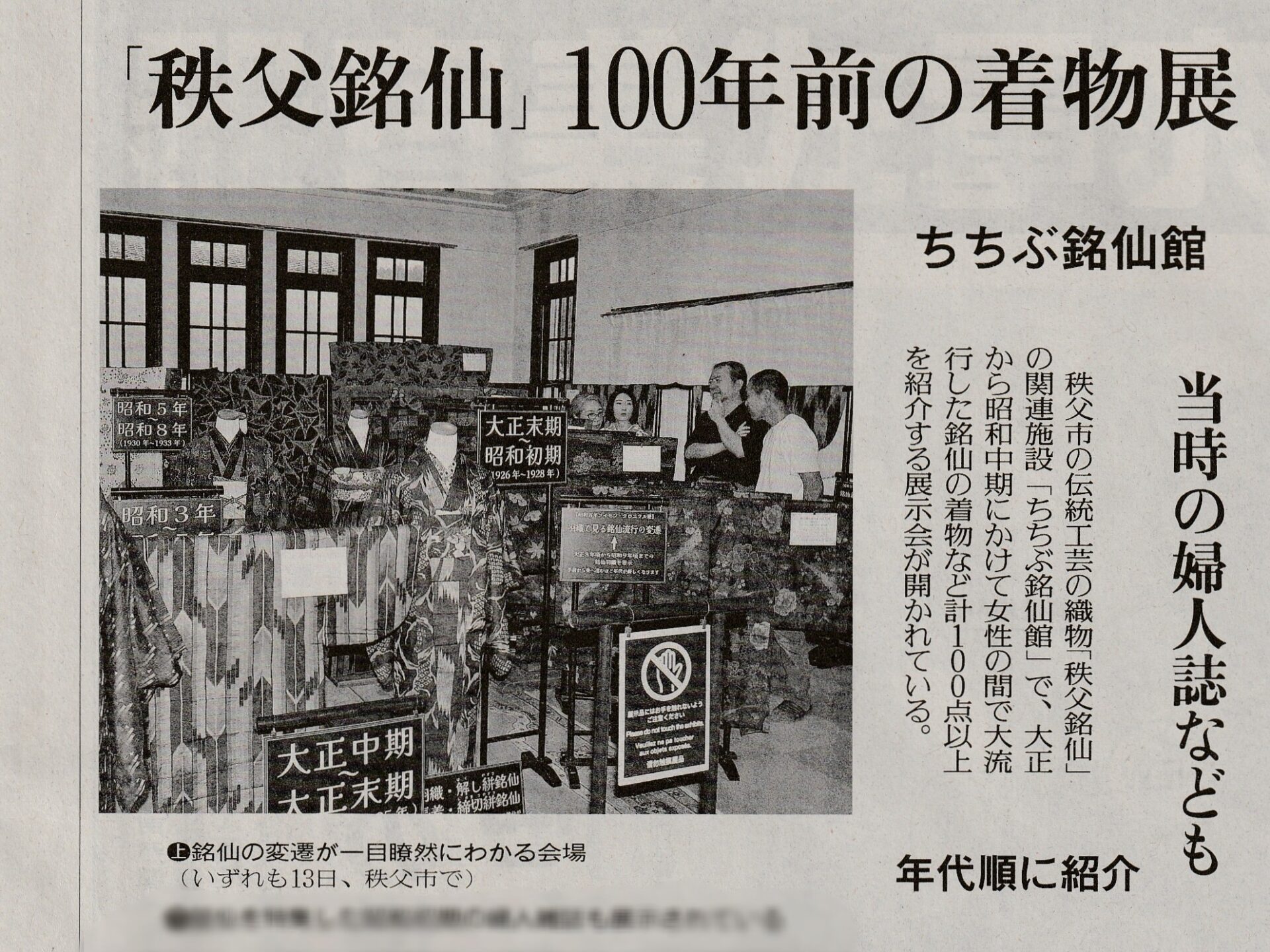 読売新聞(埼玉版)2025年9月21日(日)朝刊に、ちちぶ銘仙館で開催の展覧会「昭和百年メイセン・クロニクル展」へ寄せた三築 未衣子のコメントが掲載されました。